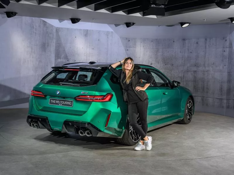 El exterior destaca por su carrocería bicolor Blu Sera Riva y Shark Grey, adornada con un doble trazo de color aquamarina que recorre la carrocería en 360º. Las manillas de las puertas presentan un acabado satinado junto con el emblema «695 Rivale» en el portón trasero y en los guardabarros traseros.