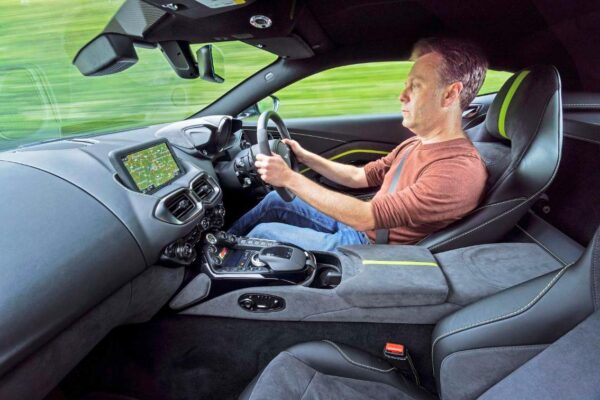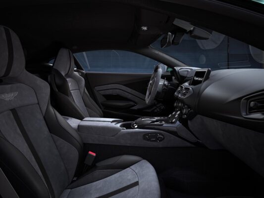 En cuanto al chasis, hay amortiguadores reajustados, un aumento en la tasa de resorte del eje trasero y una configuración de dirección más precisa. Se montan neumáticos Pirelli a medida, y es la primera vez que un Vantage rueda sobre llantas de 21 pulgadas.