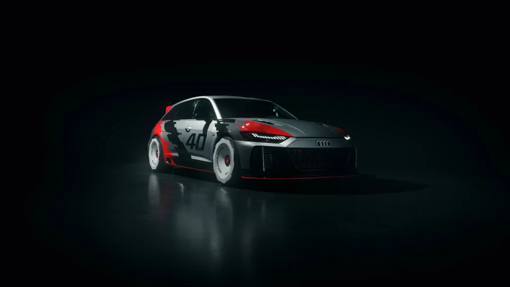 Homenaje al Quattro de 40 años, mezcla de RS6 Avant con inspiración de carrera —llantas monotuerca, baquets, escapes laterales y alerón agresivo.