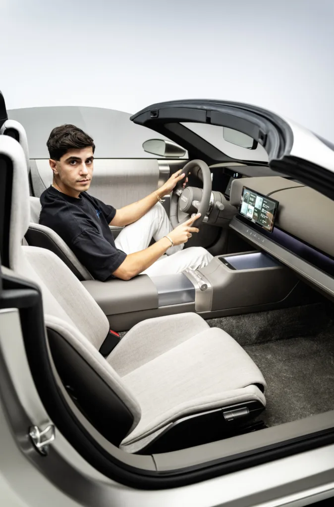 Roadster eléctrico y autónomo con empuje dual: modo deportivo o Grand Touring. Su chasis cambia de 4,94 a 5,19 metros para variar espacio y emoción.