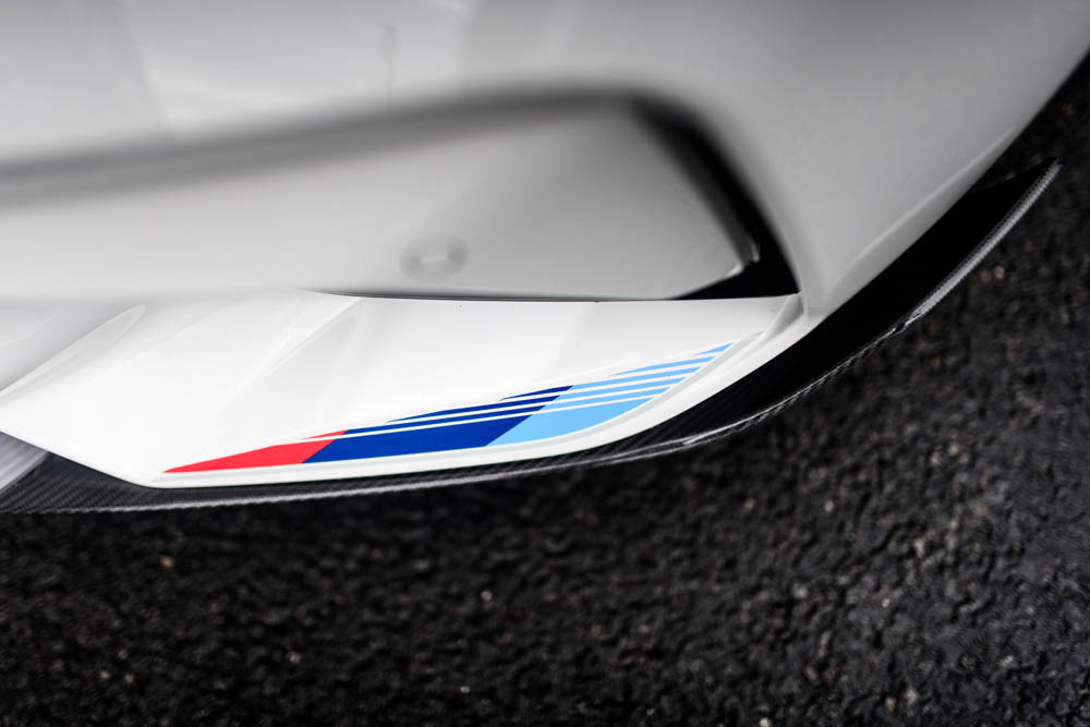 Al igual que la unidad del 2002 Turbo que primero se presentó, este M2 Competition se viste de blanco en cu carrocería, decorado con unos vinilos como los de su ancestro, con los colores de M Motorsport, y añadiendo ciertos elementos especiales que no encontraríamos en un M2 normal.