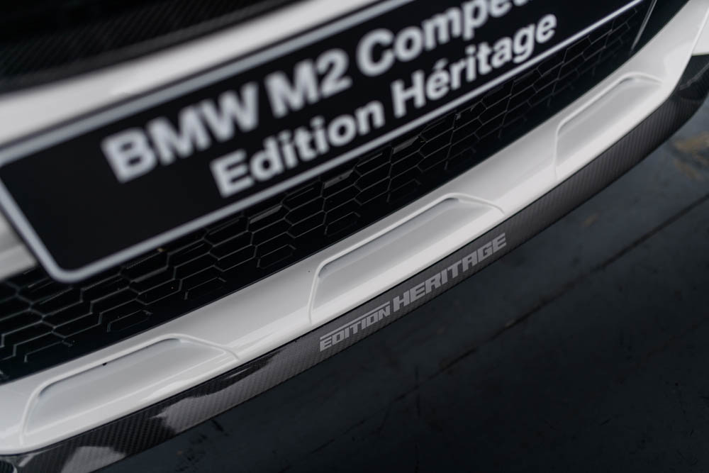Por lo tanto en este M2 Competition Heritage Edition nos encontramos con algunos elementos M Performance en fibra de carbono, como la parrilla delantera, el splitter frontal, difusor, carcasas de los retrovisores, el alerón y las colas de escape.