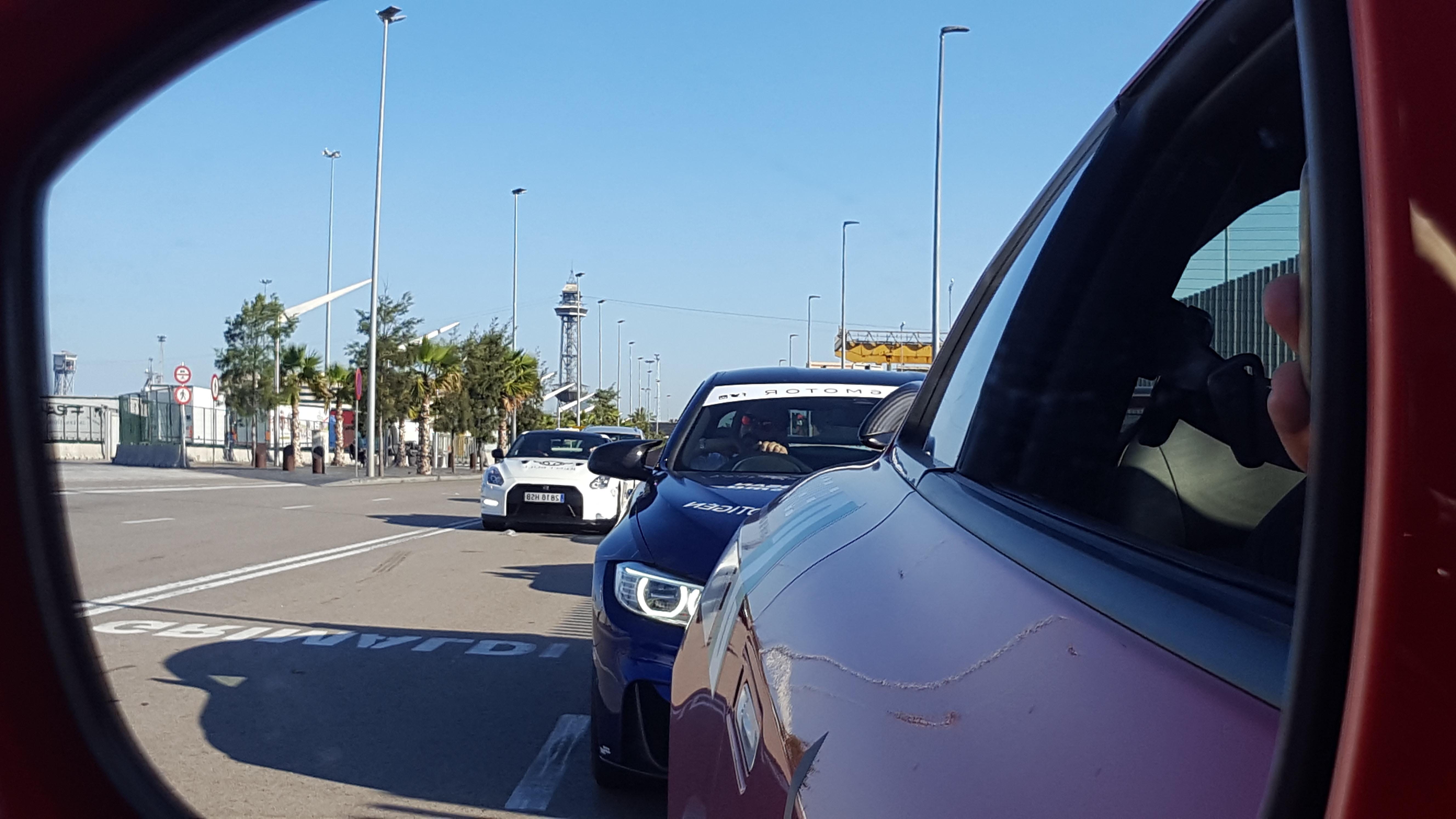 El Hotel Miramar en su entrada acoge 21.000 CV de potencia, de los cuales 1.710 son de los tres Nissan GT-R que estarán presentes este año. Nervios, carreras con maletas y acelerones en vacío por doquier, hay que dar espectáculo a la muchedumbre que se agolpa a la salida del Hotel Miramar. Casualidad o no para cargar los coches en el ferry rumbo a Roma hay que pasar por un túnel. Nunca había visto a tanta gente hacer aspavientos con la mano para acelerar. Dicho y hecho. La imagen de 46 deportivos esperando para ser subidos al barco se queda en nuestras mentes hasta la hora de la gala de Barcelona Motordays y el día siguiente.