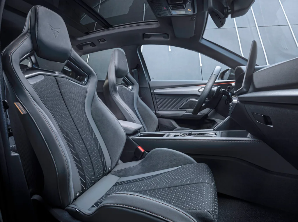 Empezamos con el plato fuerte. El Formentor VZ5 no es un SUV más; es un animal de otra época. Bajo el capó late el glorioso bloque 2.5 TSI de cinco cilindros (sí, el de Audi), que entrega 390 CV y 480 Nm de par.