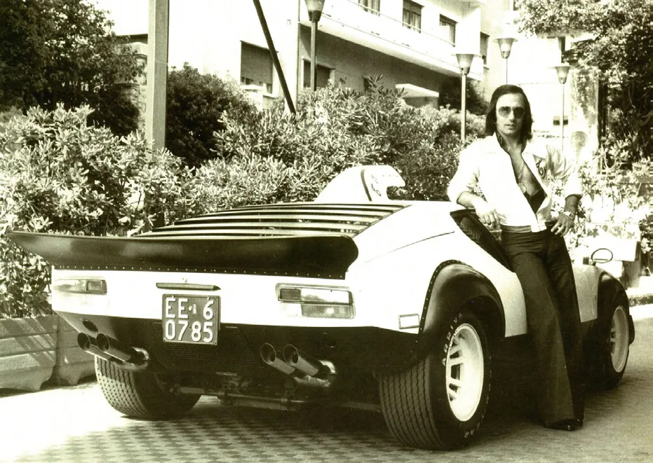 El griego Constantin “Tony” Mantas era mánager de artistas, amigo de Alejandro De Tomaso y aficionado a los coches únicos. Anteriormente ya había comprado un prototipo único del Mangusta Spider. Cuando encargó un Pantera GTS quiso un coche a su gusto. Esto incluyó aletas estilo Gr. 4, faldones extendidos, nuevas llantas o una toma de aire periscópica. En la foto, si no fuera por la matrícula, podríamos haber confundido a Mantas con el gran Paco de Lucía.