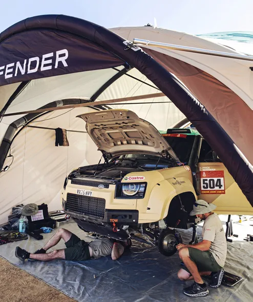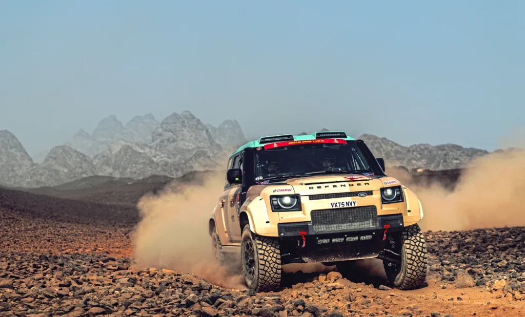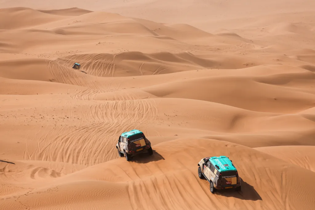 JLR se asoció con Prodrive para la gestión operativa. Tras dos semanas, más de 4.900 km cronometrados y 3.000 de enlaces, el Defender D7X-R terminó primero, segundo y cuarto de su clase. Rokas Baciuska y Sara Price subieron al podio, con Stéphane Peterhansel muy cerca.