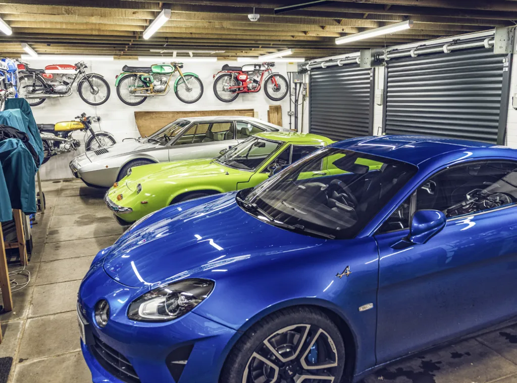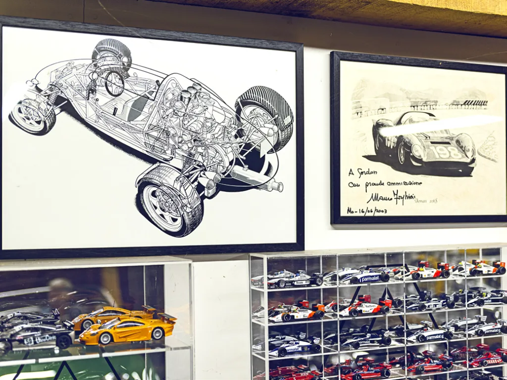 Su colección de coches refleja su visión del automóvil: no le interesan los superdeportivos típicos. Conduce a diario un Alpine A110, que considera una referencia absoluta, y guarda joyas como Lotus Seven, Elan, Europa, un Ferrari 308 GT4, un Ford Thunderbird del 57 o el ligero Rocket diseñado por él mismo.