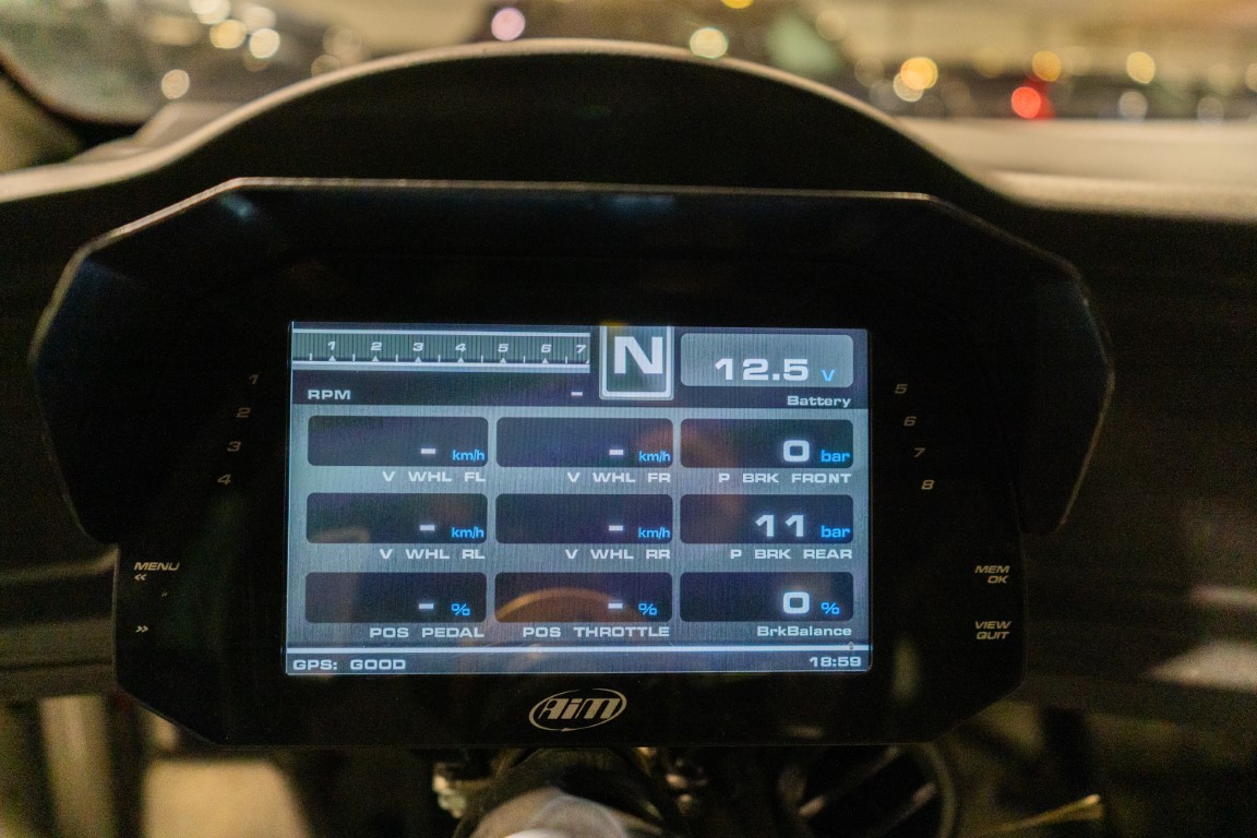 - Interior de cuero/tela gris con bordado «M Motorsport»