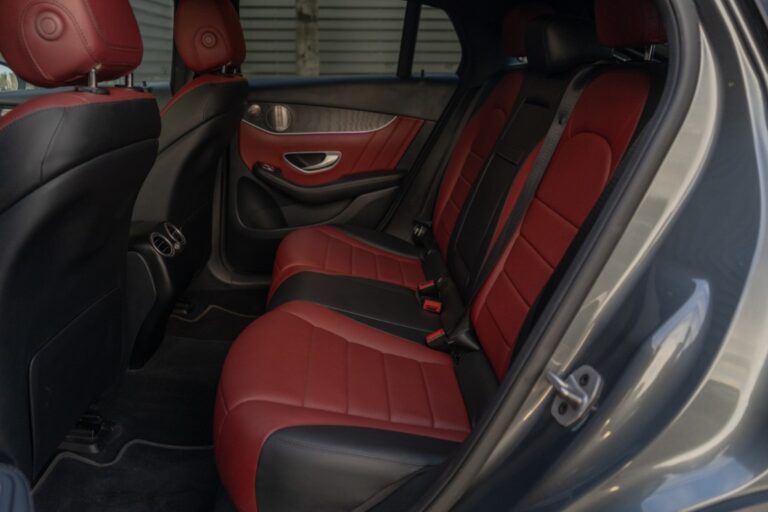 Tapicería en piel roja y negra
