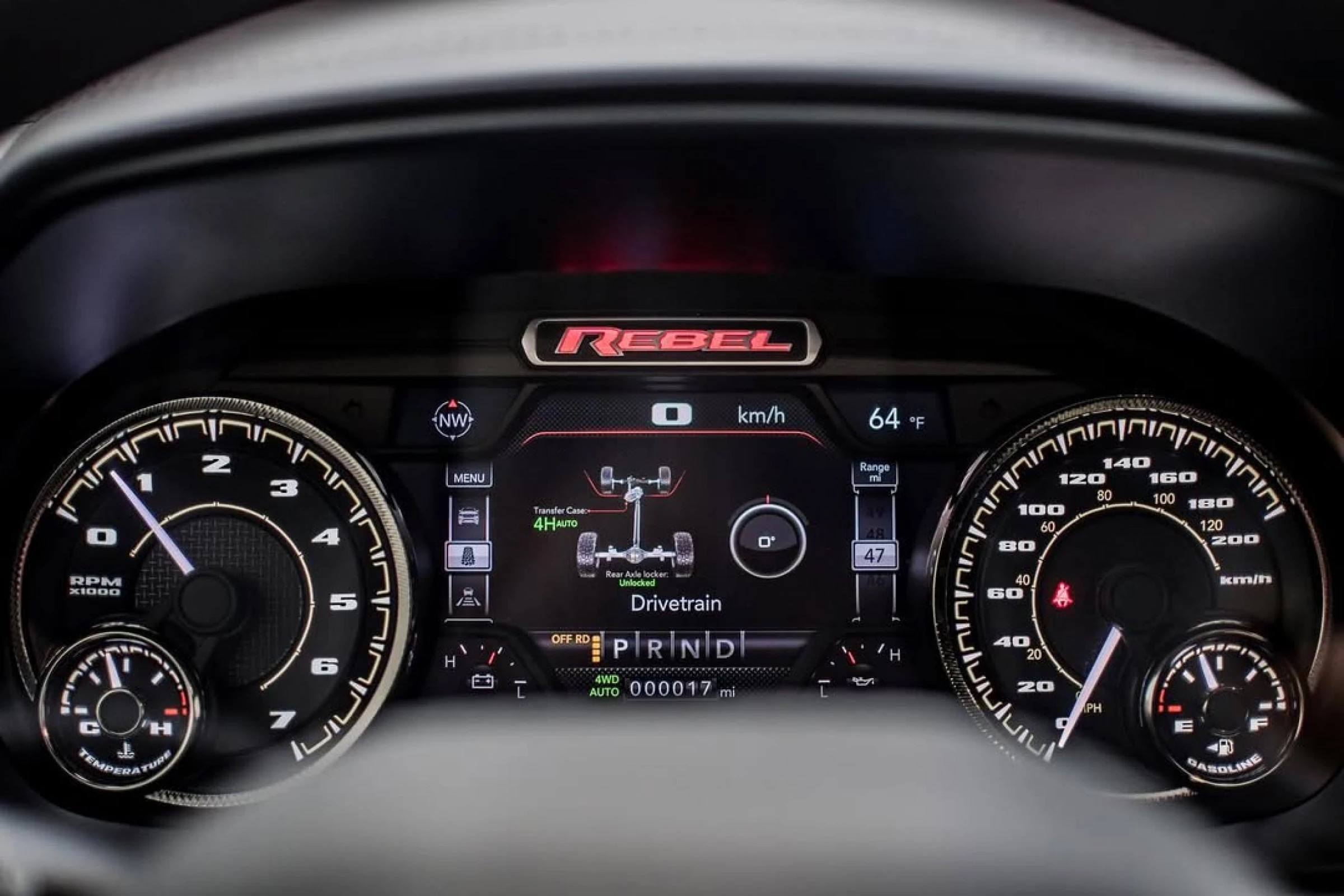 La RAM 1500 Rebel Night Edition es la pick-up todoterreno definitiva. Combina una presencia imponente con la potencia del motor HEMI V8 y la tecnología eTorque, ofreciendo un equilibrio perfecto entre rendimiento, confort y capacidad off-road. Su acabado Flame Red realza su carácter agresivo, mientras que el interior negro aporta elegancia y durabilidad.