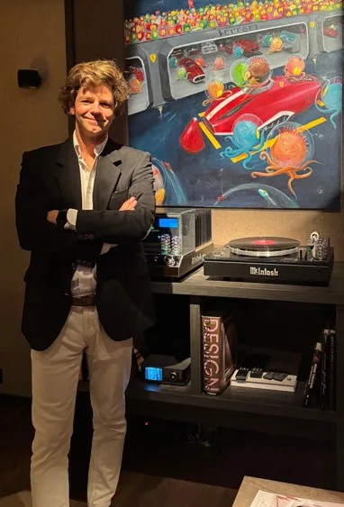 Esa conexión entre arte, tecnología y experiencia sensorial quedó especialmente patente en su reciente participación en una exposición colectiva comisariada por Javier Camacho, fundador de Eneaverso, en la sede de Global TV. La muestra coincidió con la presentación de la Ferrari Collection de Bang & Olufsen, un contexto que reforzó la idoneidad de Agulló dentro del proyecto. Su obra dialogó de manera orgánica con un entorno donde el sonido, el diseño y la precisión técnica alcanzan un nivel casi escultórico.