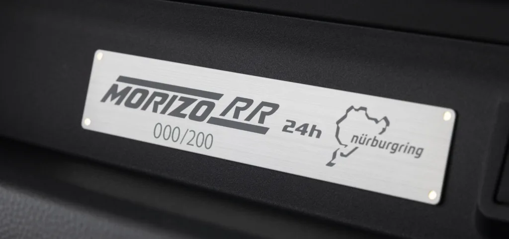 En el habitáculo, los detalles en amarillo Morizo, las costuras de contraste y la placa numerada con el logotipo MORIZO RR subrayan el carácter especial de esta edición limitada y su enfoque claramente deportivo.