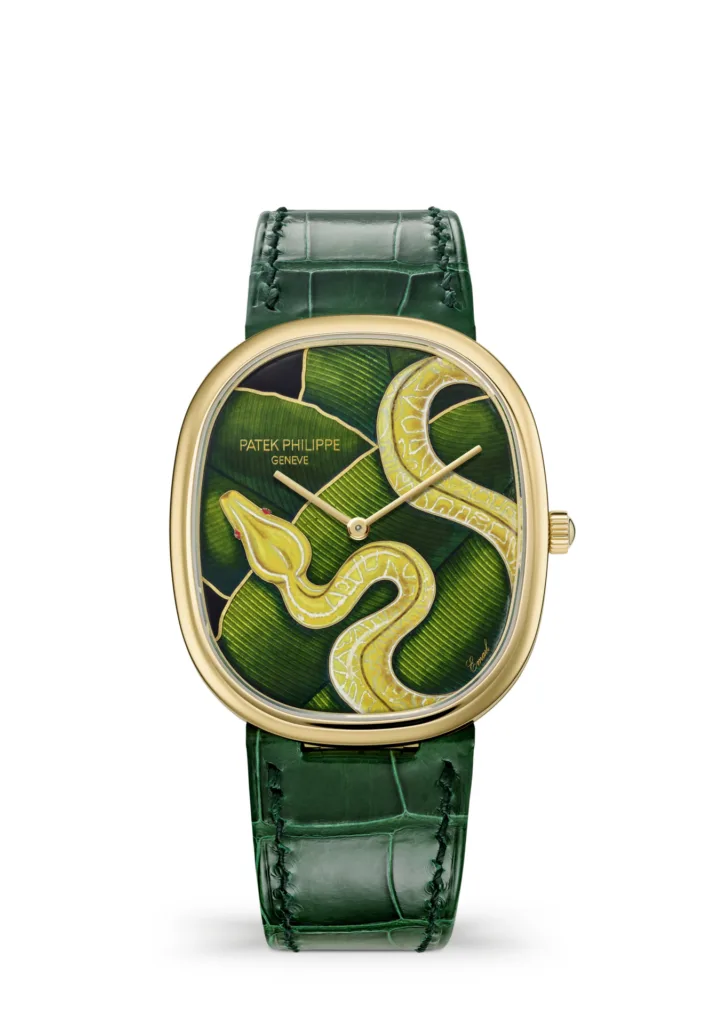 Golden Ellipse de oro amarillo edición limitada a 10 piezas con esfera en esmaltados cloisonné y flinqué enriquecida con pintura en miniatura sobre esmalte.