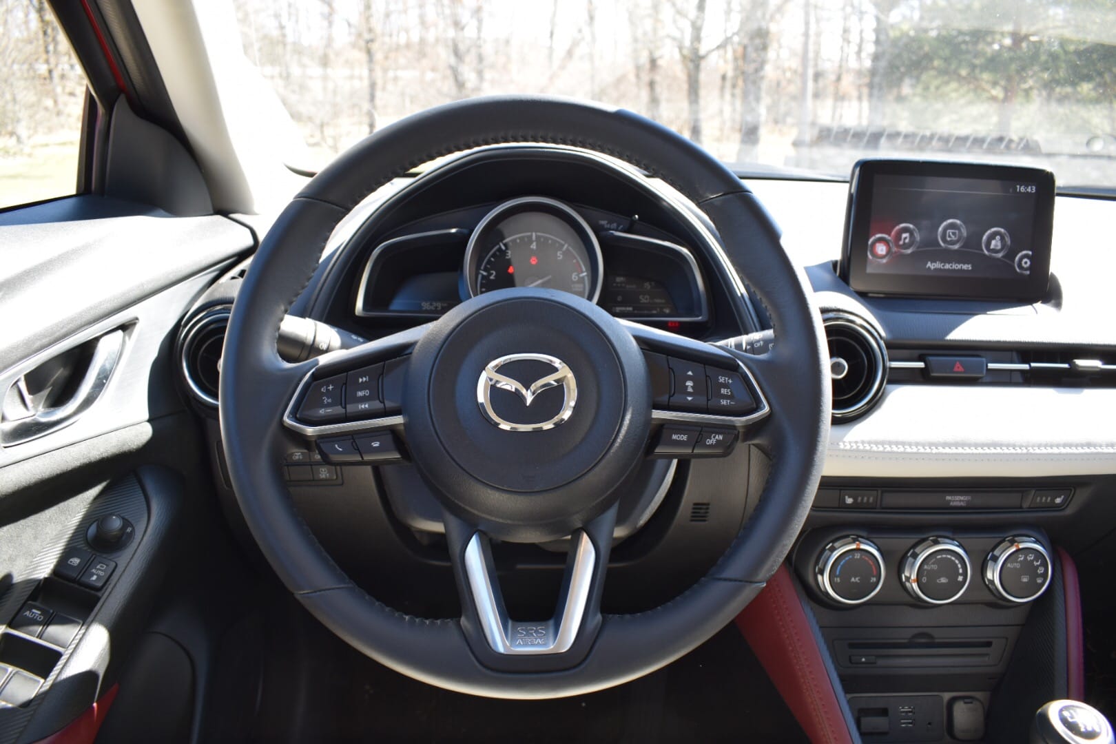 Tiene ese carácter deportivo que Mazda imprime en sus modelos, con una posición del conductor más baja de lo que cabría esperar en un crossover. La calidad percibida es alta, gracias en parte a las inserciones de cuero en blanco que implementaba nuestra unidad –acabado Luxury-, unido a una configuración interior orientada directamente al conductor, excepto por algunos detalles que si “cojean”.