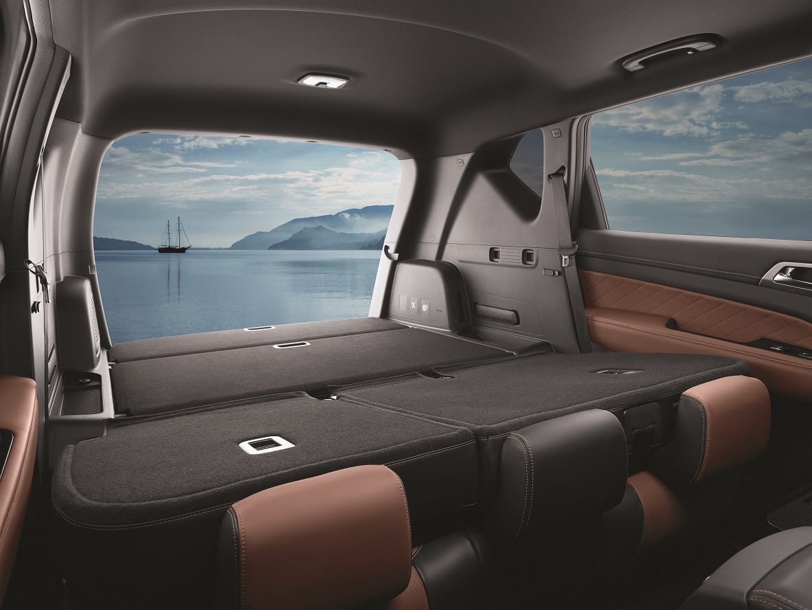 El nuevo Rexton viene con dos tipos de configuración interior: 5 ó 7 plazas. Se ha aumentado la batalla total de la cuarta generación (+3 cm), por lo que la habitabilidad interior ahora es mayor. La calidad interior ha dado un salto notable, donde encontramos cuero de alta calidad mezclado con inserciones de piano black y secciones cromadas.