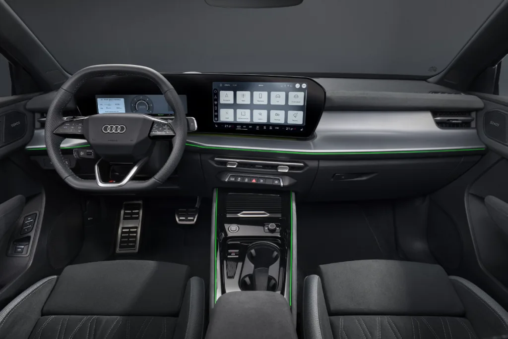 Audi insiste con razón en que este coche es un compañero digital, y lo es: Android Automotive OS, tienda de apps integrada, asistente de voz con IA y nuevos controles en el volante que liberan espacio en la consola central.