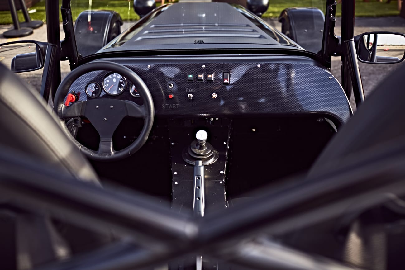 Nada más llegar a la zona donde están ubicados, junto al karting, vemos un autobús inglés de dos pisos. Pero lo más jugoso está detrás. Hablamos de una experiencia de conducción y de diversión, al estilo de los años de los años 60. ¿Cómo que al estilo de hace 50 años? Sí, porque los coches con los que quemar goma y adrenalina son ni más ni menos que cuatro Westfield AeroRace. Unos hierros con motor y ruedas que dan las mayores sensaciones al volante que puedas imaginar. Al estilo de los Caterham Seven, estos coches con su motor de origen Ford de 2.0 litros y 180 CV son pura diversión gracias a que solo pesan 450 kg