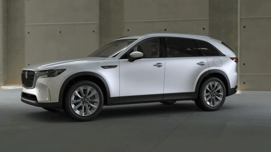 El nuevo Mazda CX-90 se posiciona como la gran apuesta de la marca en el segmento de los SUV de tres filas. Cuenta con un sistema híbrido enchufable que une un motor 2.5 de gasolina con un motor eléctrico para entregar hasta 323 CV. Puede recargarse en apenas hora y media con un cargador de 240 V.