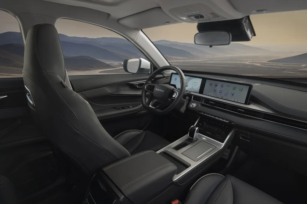 El habitáculo del EBRO s400 combina ergonomía y tecnología: doble pantalla de 12,3 pulgadas, mandos físicos para la climatización y una disposición intuitiva para el día a día.